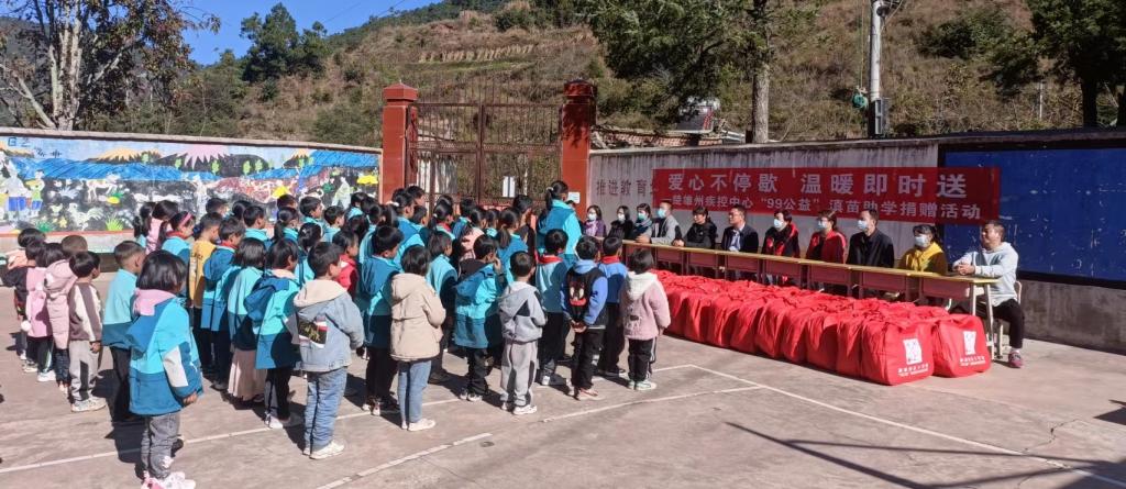 爱心不停歇,温暖即时送。麦地冲初冬虽寒,但不缺爱与温暖。11月10日,楚雄州疾控中心党委书记和建荣和党委副书记刘兰菊带领单位职工代表到麦地冲村委会招银小学开展楚雄州疾控中心“99公益”滇苗助学捐赠活动,将中心全体职工的爱心筹款及腾讯公益、中国红十字基金会等公益组织配捐款购买的温暖被褥包送到该校57名困难学生的手上。受赠学生脸上洋溢着童真幸福的笑容、开心地说道:“有了这个温暖被褥包晚上在学校睡觉再也不怕被冷醒睡不着啦!我们睡得香才能安心学习,我们一定好好学习,用优异的成绩回馈家乡和社会,让伟大祖国更加强大”。