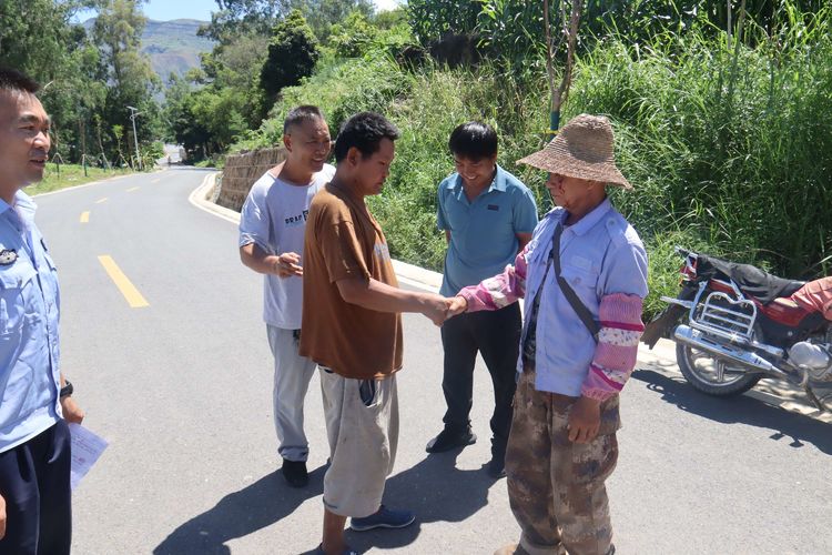 了解了事情的详细经过后,民警对双方进行了法律常识宣传,对动手打人的情况进行了批评教育,因双方系叔侄关系,在征求双方意见的基础上,民辅警、村委会工作人员开展调解工作,在炎炎烈日下,通过分析双方存在的问题,列举事例,晓之以理、动之以情经过一个多小时的说服教育,双方互相赔礼道歉、握手言和。