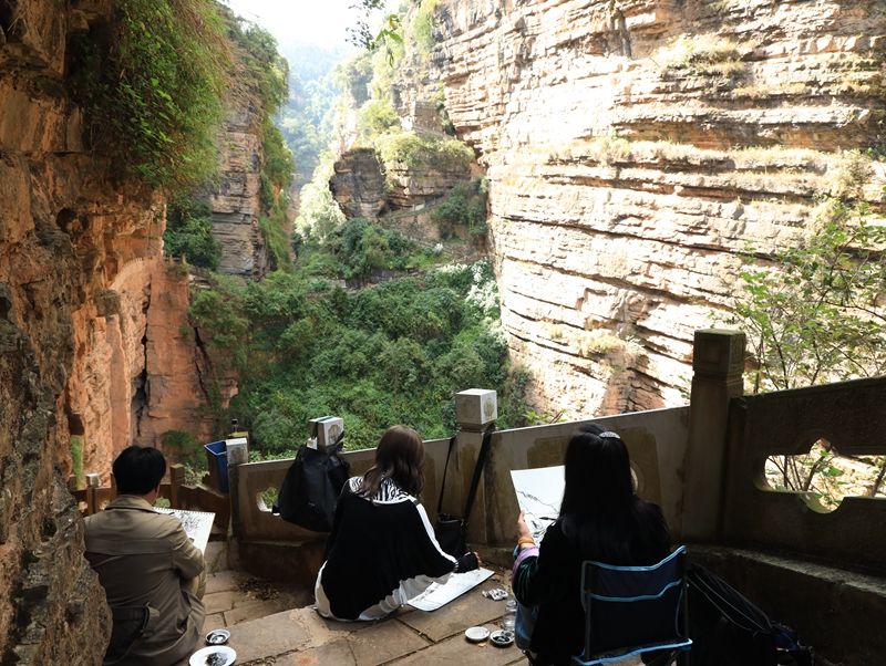 艺术家们在大裂谷现场开展写生创作,舞动画笔,挥毫泼墨,一气呵成,创作了一批展现彝州大地山川风貌、民族风情、民俗特色的优质书画作品,并将墨宝画作赠予当地,充分体现了艺术家们心念乡村,愿以文化促旅惠民,助力乡村振兴的使命担当。