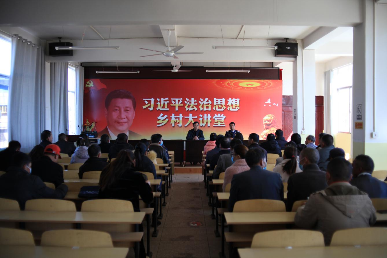 为贯彻落实党的二十大精神,全面深入学习宣传习近平法治思想,2022年11月18日,武定县猫街镇“习近平法治思想乡村大讲堂”第二期开讲。猫街镇政法委员、副镇长莫琨同志以“深入学习贯彻党的二十大精神 提升农村党员法治思维”为主题作专题讲座,镇、村、组党员领导干部和农村“法律明白人”共计100余人参加学习。