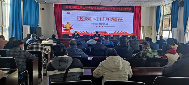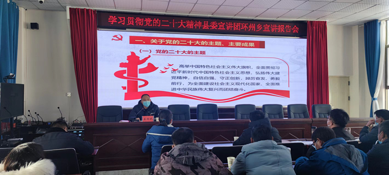 2022年12月20日下午,环州乡举行了学习贯彻党的二十大精神宣讲报告会,环州乡党政班子成员、全部干部职工、村委会主任、驻村第一书记共计60余人参加。