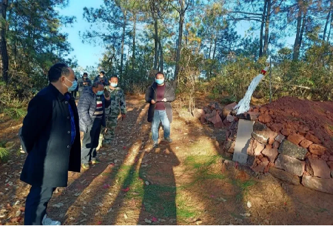 了解相关情况后,插甸镇民政所立即采取处理措施,联系到墓地所在村委会,要求村委会立即前往控制现场,并把情况汇报给镇政府主要领导,在镇人民政府杨旭保镇长的统筹安排下,与武定县民政局殡葬管理所取得了联系,县民政局赵文斌副局长及殡葬管理所杨国辉等相关工作人员立即赶赴我镇,在我镇政府乔丽艳副镇长和民政所相关工作人员的带领下,在最短的时间内赶往现场处置。到现场查看后,有三座墓已用石头支砌,竖立了简易的墓碑,并做了填土。