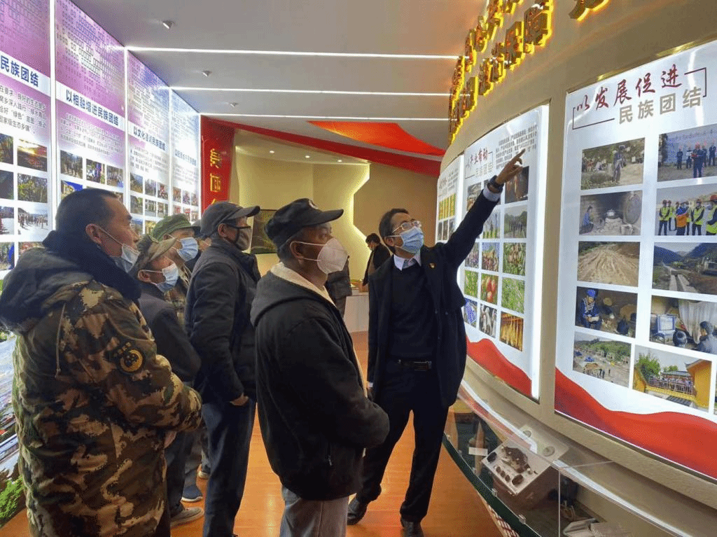 专题党课结束后,李华带领党员群众参观了发窝乡民族团结进步示范展厅。
