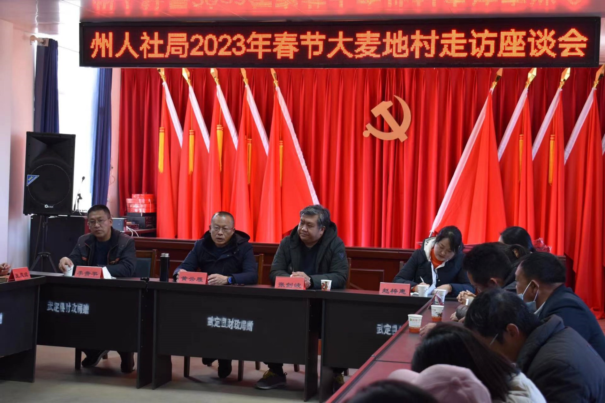 1月13日,在新春佳节即将来临之际,黄云雁等领导到定点帮扶的武定县猫街镇大麦地村委会代表楚雄州人社局党组和全体干部职工开展春节慰问送温暖活动。