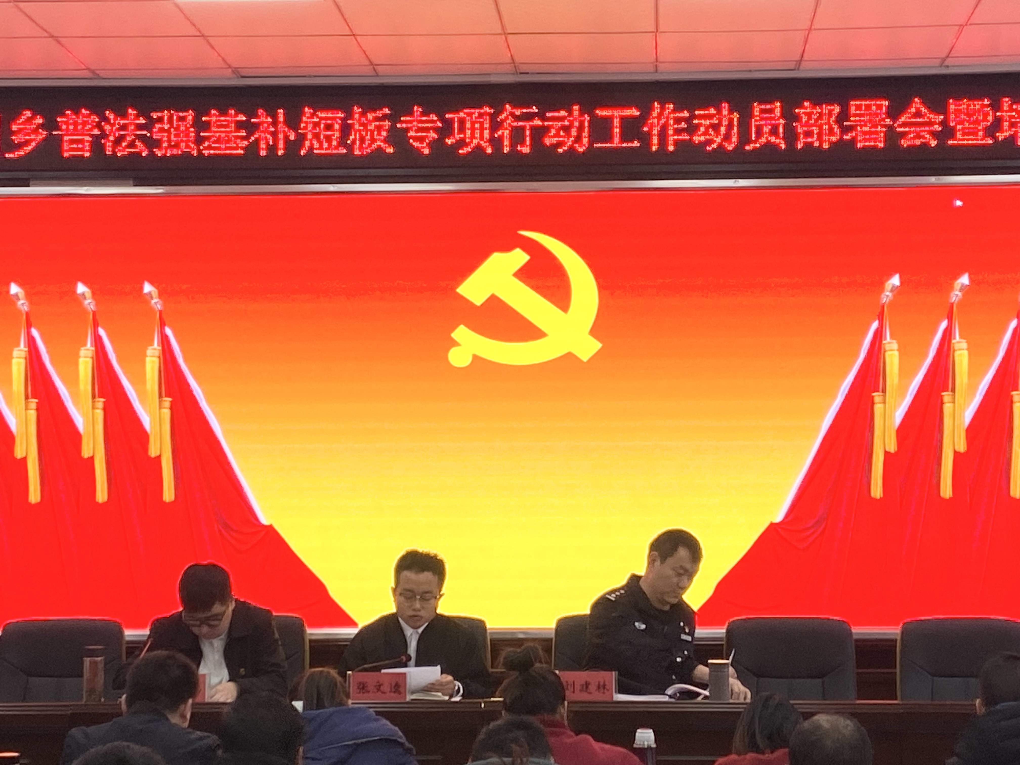 会议要求:一是要围绕中心。成立由乡党委书记任组长,乡人民政府乡长任副组长,乡党政班子成员、各中心站所长、各村委会书记主任为组员的领导机构,成立专项普法强基补短板领导小组。二是要突出重点。结合我乡实际,紧盯命案高发多发、外出务工人员多、矛盾纠纷突出的村、组为重点区域,紧盯外出务工人员、不良行为青少年、吸毒人员、社区矫正人员、各类矛盾纠纷当事人等八类对象。三是要统筹力量。机关全体党员干部要主动深入基层、沉入一线,组织开展“万名党员、干警进万村”活动,参与普法强基补短板专项行动。