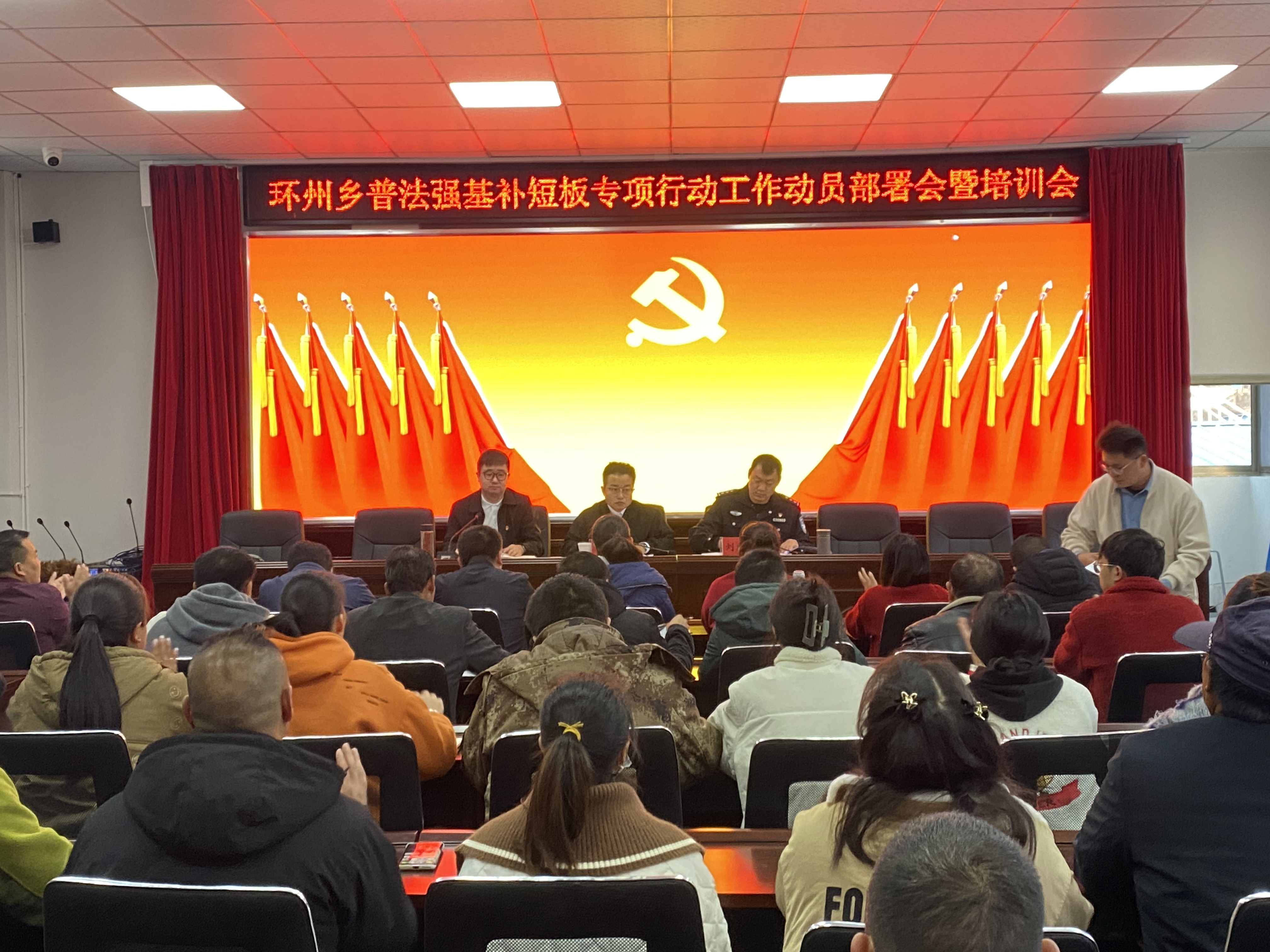 2月24日,环州乡组织召开普法强基补短板专项工作动员部署会,对普法强基补短板专项工作发出动员令,作出详细部署,并进行业务培训。县普法强基补短板专项行动第八工作队组长、楚雄州民政局张文逵同志作动员讲话,县公安局副局长刘建林出席会议并讲话,乡党委书记杜彬彬主持会议并提工作要求。