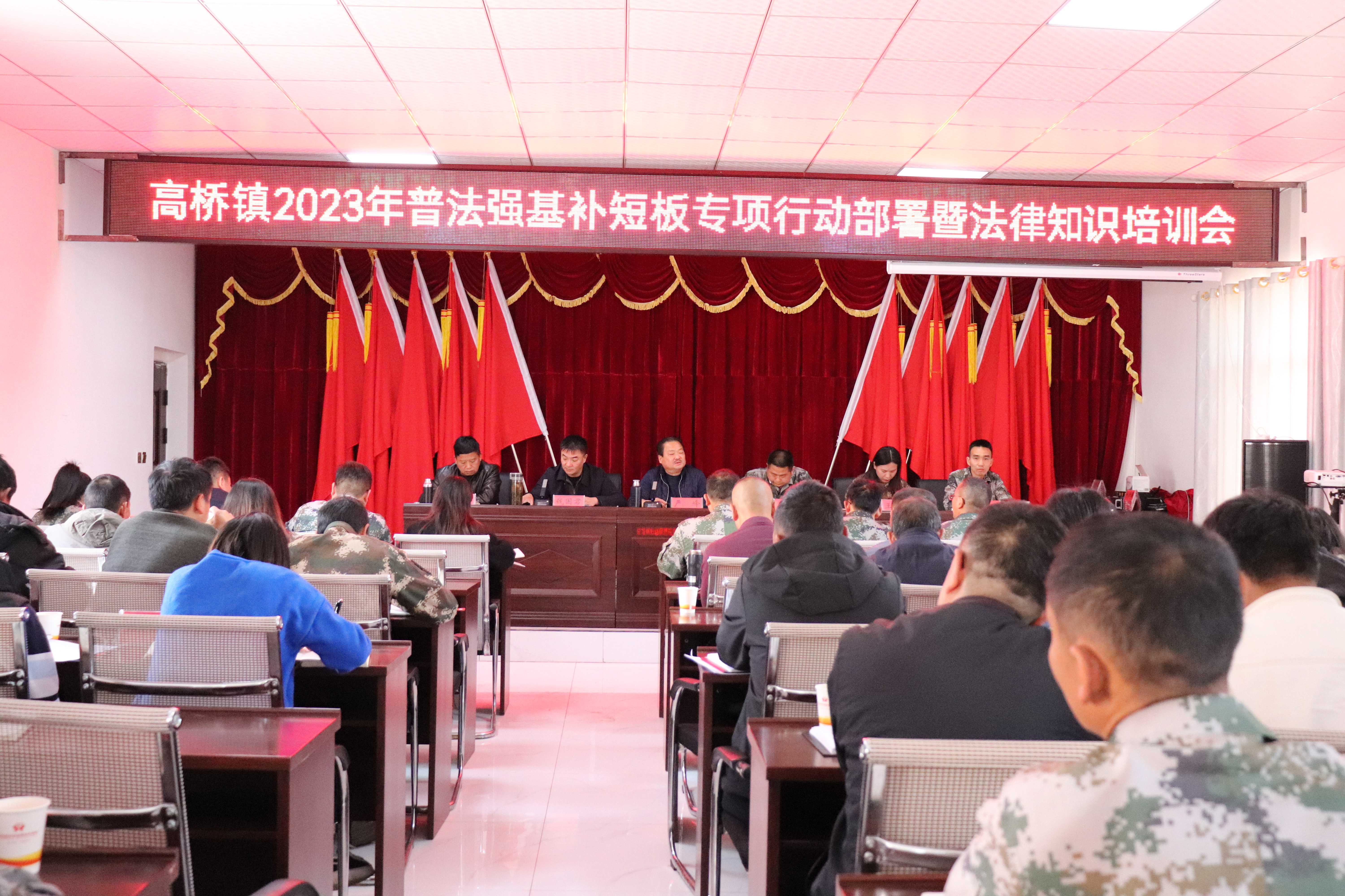 县专项普法第二工作组副组长、县公安局副局长钱国君作动员讲话;高桥镇党委书记李长清作动员讲话、提工作要求;县专项普法第二工作组组长、州公安局一级警长严峰作工作要求。
