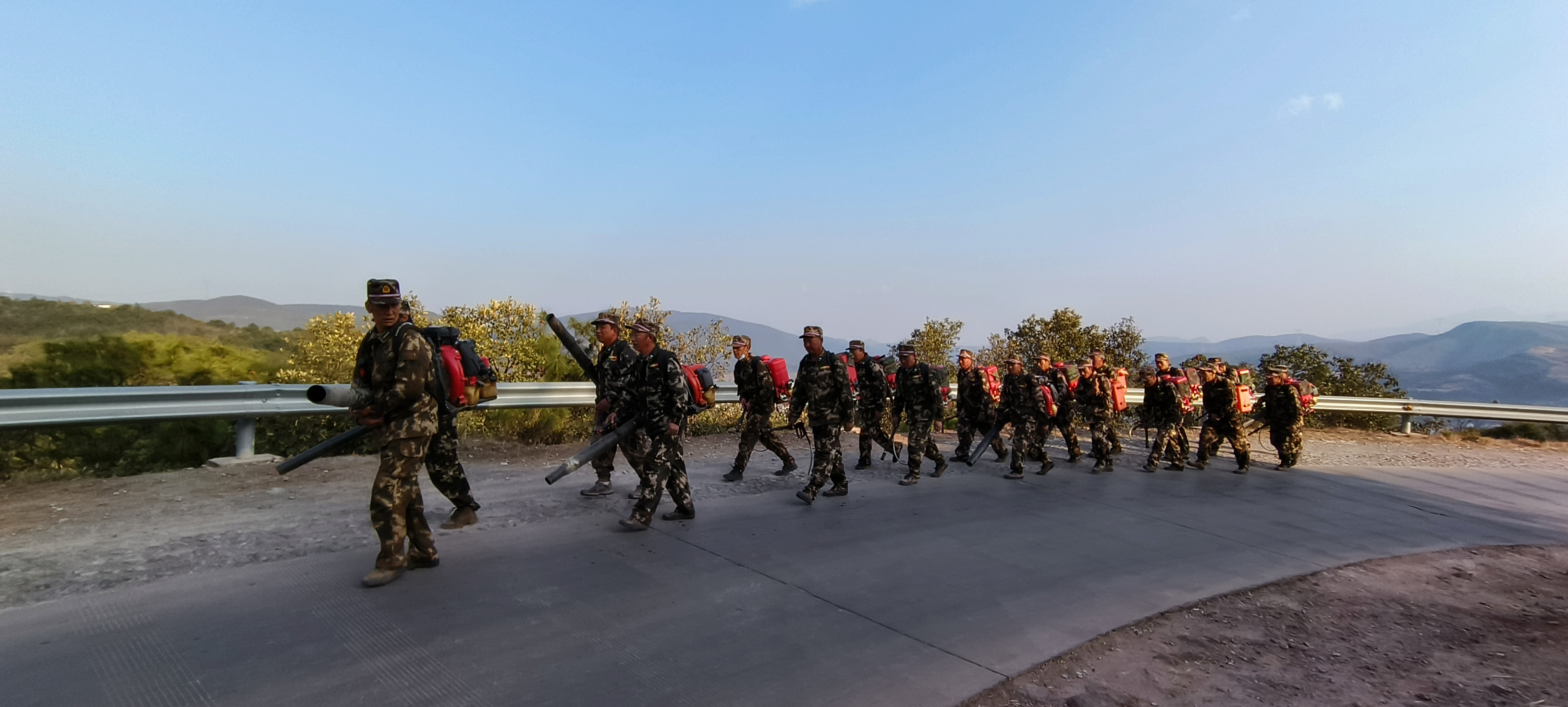 三是强化体能,夯实基础。为强化基础体能,提高队伍协调作战能力和凝聚力,确保队伍在关键时刻“拉得出,冲得上,打得赢”。扑火队全副武装进行了10公里拉练。