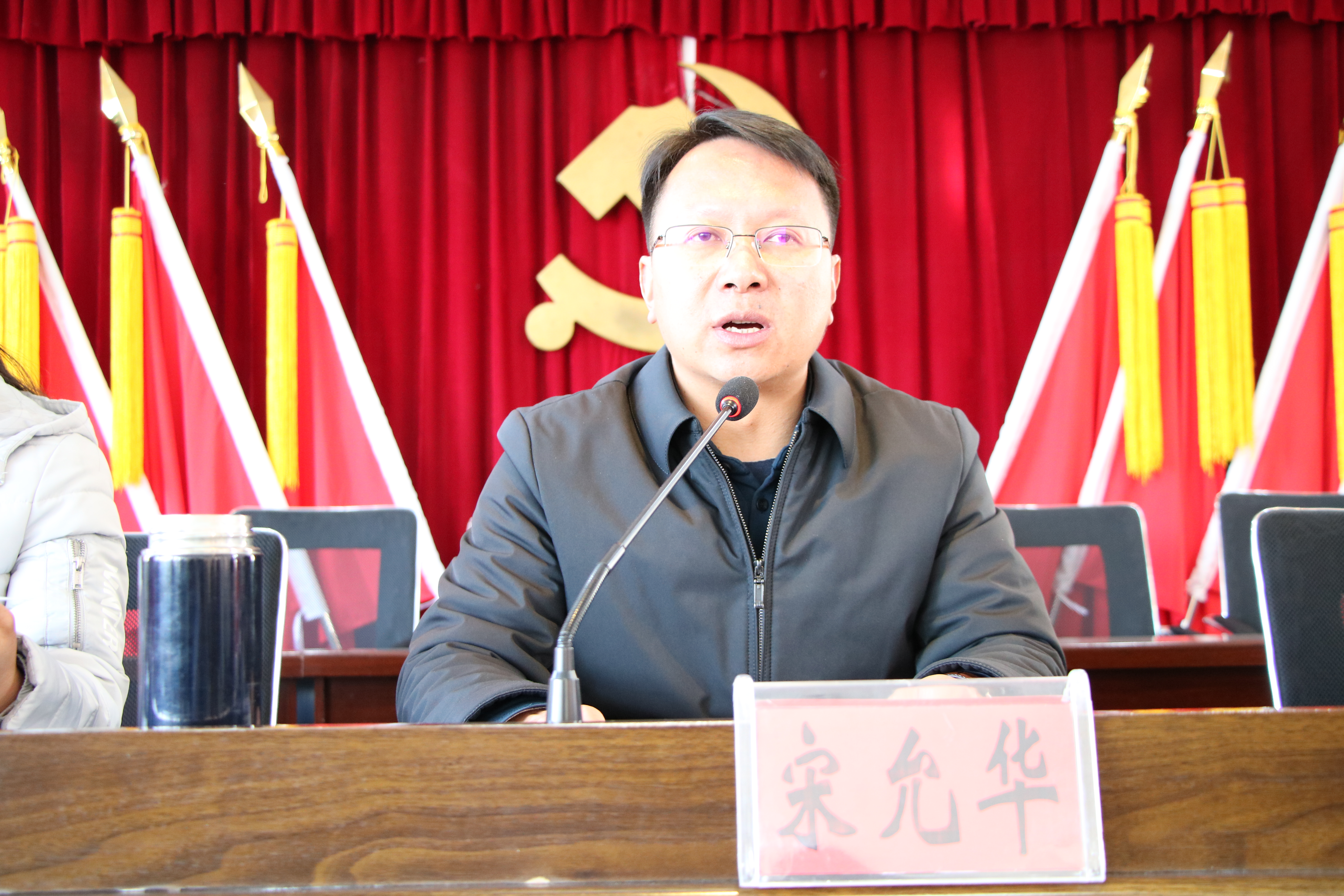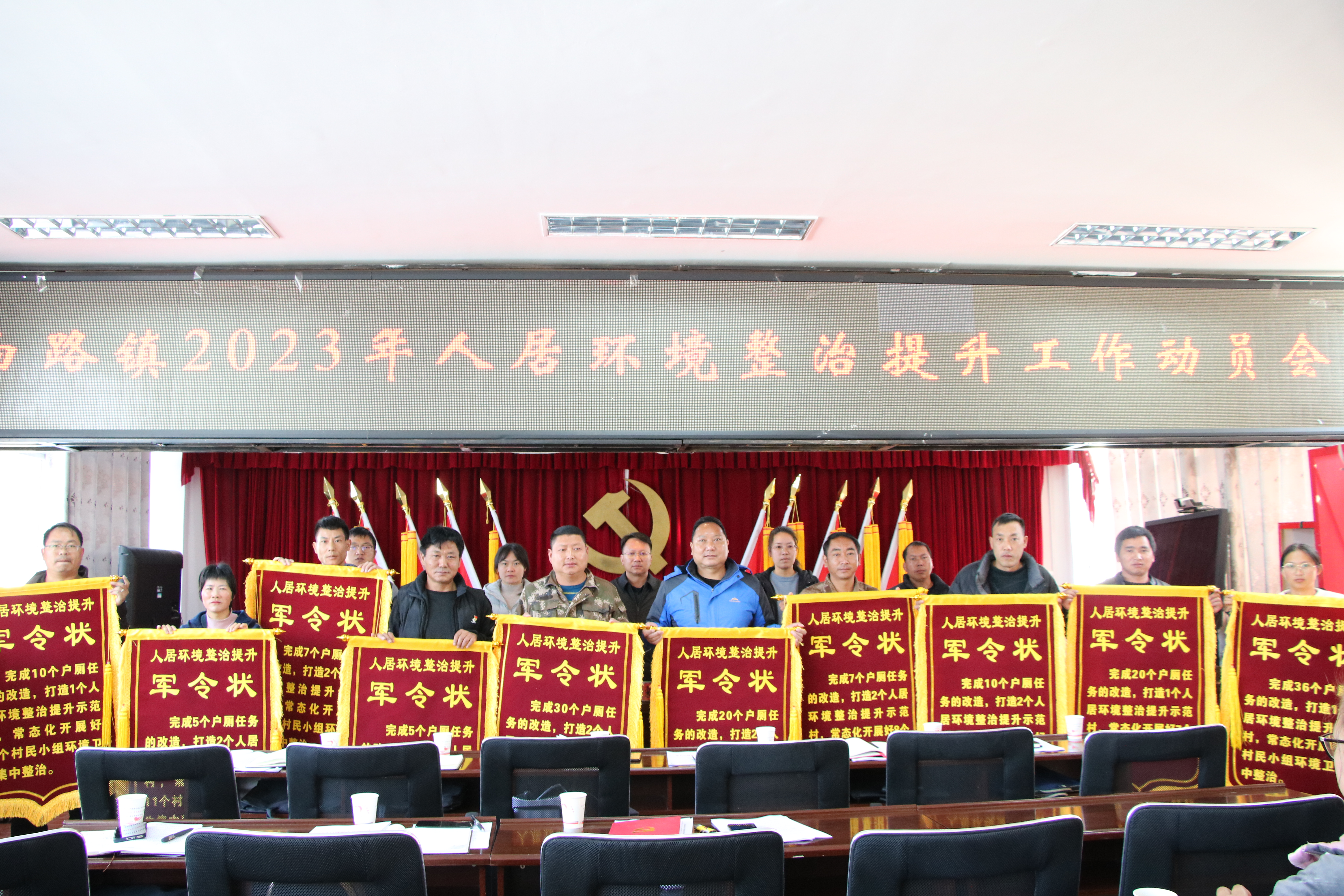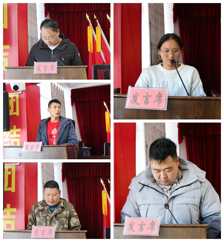 参加会议的党政班子成员为10个村党总支、村委会颁授人居环境整治提升军令旗。白路村党总支书记李俊、岔河村党总支书记欧阳竑、中村村党总支书记杨云飞、三合村党总支书记杨晓倩及农业农村服务中心主任杨金益作表态发言。