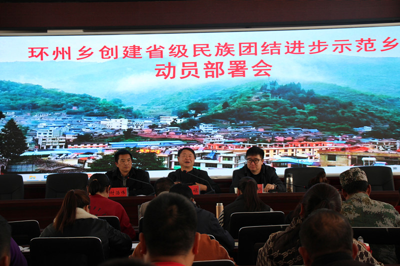 “团结是不变的初心,幸福是永远的追随。”“和谐融入左脚舞中,感恩唱在酒曲歌里。”为切实推进民族团结进步示范乡创建工作,3月1日,环州乡召开了创建省级民族团结进步示范乡动员部署会。会议观看了环州乡创建民族团结进步示范宣传片,通报了环州乡争创省级民族团结进步示范乡主要工作任务。州级民族团结进步示范村环州村党总支书记王智贤作交流发言,乡党委书记杜彬彬作动员讲话并对创建工作作了具体安排,县民宗局局长苏兴禄出席会议并讲话。