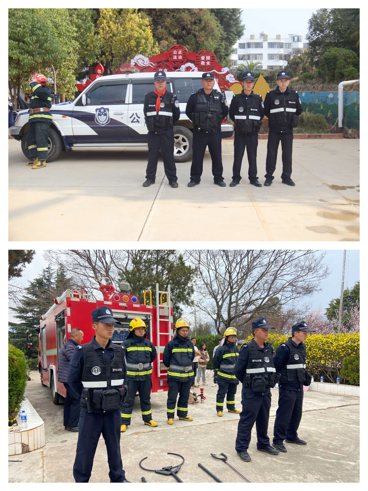 派出所民警现场向全体师生讲解了钢叉、盾牌、脚铐等装备的使用方法和注意事项,并在现场向同学们展示,此外,民警还与消防队员一起讲解了灭火器使用前的注意事项以及具体的使用方法,并邀请了师生代表一起进行演练。