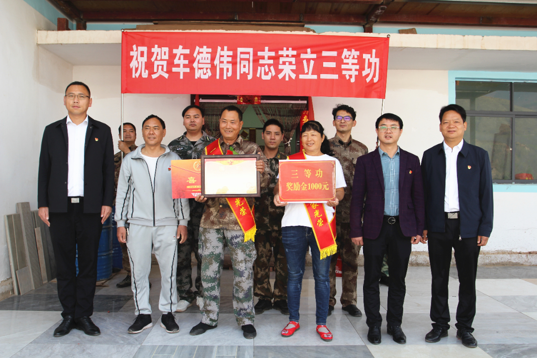 每到一位立功士兵家中,报喜团都为军人家属佩戴绶带、颁发立功喜报和送上慰问金,对他们在部队取得的荣誉表示热烈祝贺,对军人家属的付出给予充分的肯定,感谢他们为部队、为祖国培养了优秀人才,为家乡赢得荣誉。