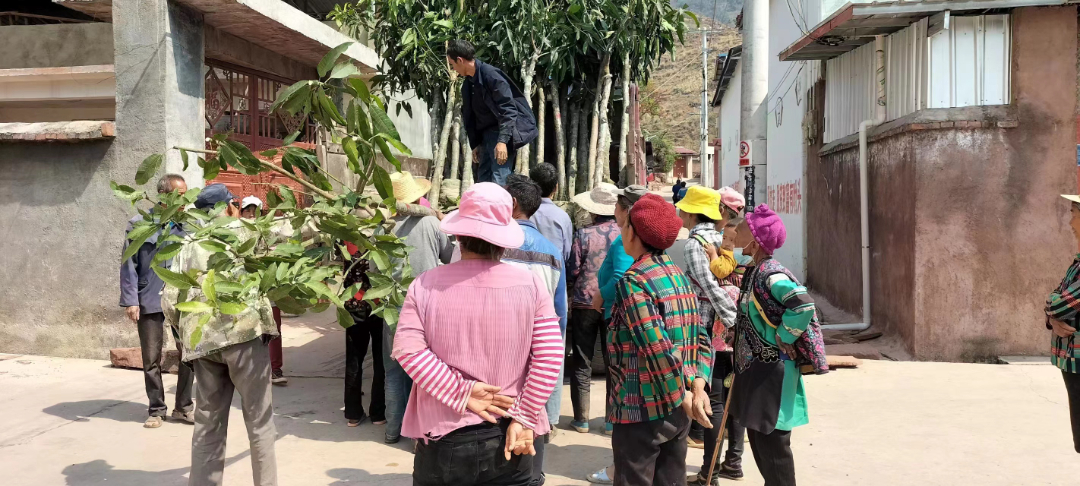 《云南省城乡绿化美化三年行动(2022-2024年)》提到,要建设绿树成荫、花果飘香、各具特色的生态宜居绿美乡村。东坡乡党委政府及时动员,积极规划,因地制宜,打造特色绿美乡村。在这场“绿美”的大赛中,东坡乡人大代表也不甘示弱。“村上无树锅不开,四方绿化沙不来,作为土生土长的本地人,植树添绿是我最支持的,作为一民人大代表,我更要积极响应,带头行动,为村庄绿化美化出一份力……”人大代表李德英说到。法古、二台坡是易地搬迁村子,巷道宽阔齐整,但少数群众自发种养的花草对于村子整体“绿美”形象一直是独木难支。考虑到东坡乡干热河谷气候最宜芒果树生长,长大后树冠茂盛,遮阴效果好,无疑是炎炎夏日里清凉避暑好去处,并且粗壮的树苗也减少了群众后期管护的难度,于是将芒果树作为道路林荫化的最佳选择。村子里在家的青壮年少,代表们主动承担了挖坑、抗树的重活,在代表们植绿激情感染下,群众纷纷表示支持,并自发参与到义务栽种的队伍里,异地搬迁点的房前屋后多了200多棵芒果树,毅然为初春的村子添了“绿”。