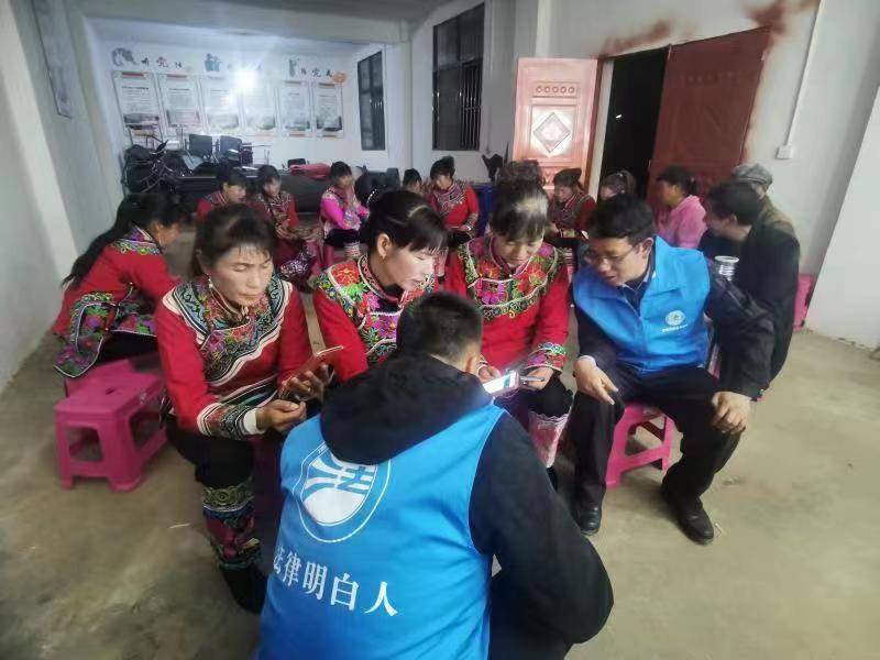 “老乡,我们是猫街镇普法小分队,今晚来是教你们如何参与“普法强基法律常识在线答题活动”。在猫街镇甸末村,普法小分队们,趁着晚上群众收工回家的时间,走村串户,手把手将“普法强基法律常识在线答题活动”参与方法教给老乡。