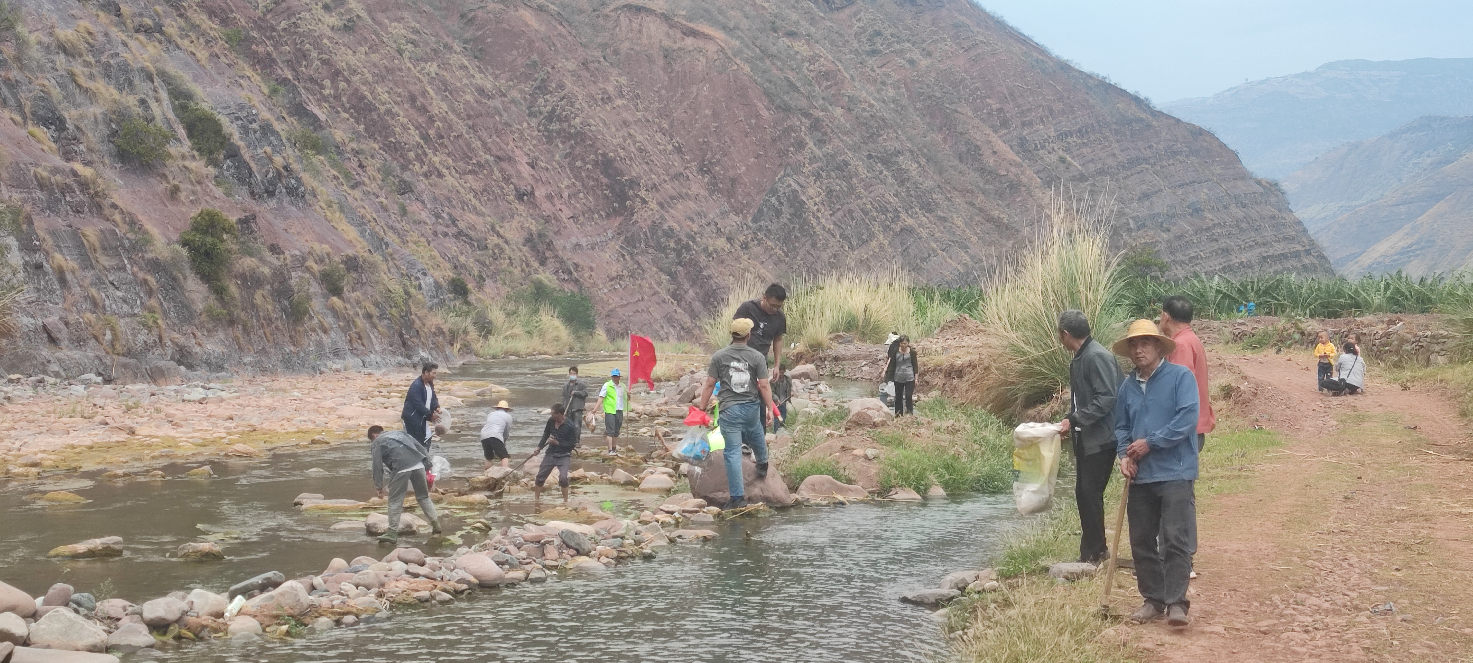 为认真贯彻落实流域环境卫生集中大整治的工作要求,进一步加强辖区内河道治理,提升居民生活环境,打造“水清、畅流、岸绿、景美”的河道新面貌。东坡乡党委政府从“党建+河湖革命”入手,组织全体干部职工、7个村委会村组党员、群众,对辖区内的勐果河、沙拉河、自乌小河、金沙江开展了河道清理活动,以实际行动落实河道清理责任。
