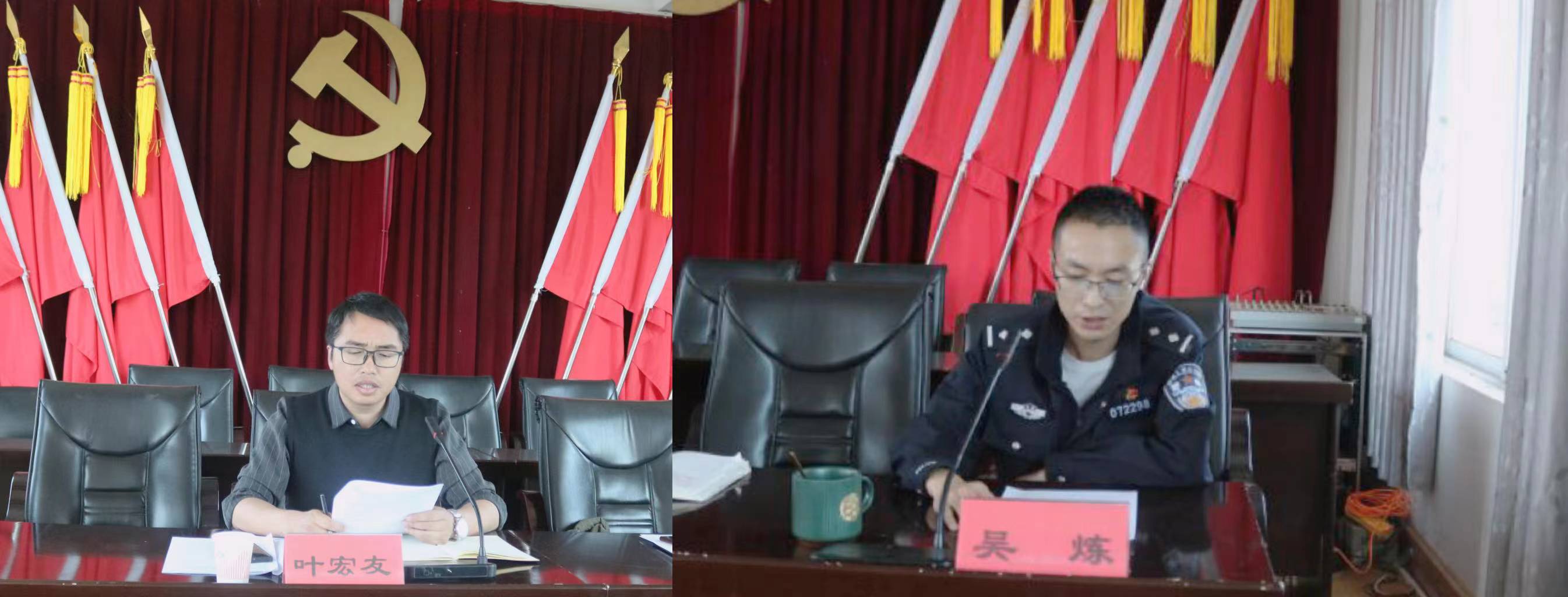 会上,镇党委宣传委员叶宏友、派出所吴炼两位同志对当前意识形态工作进行了分析研判。