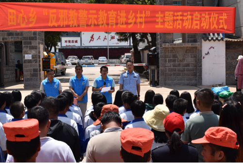 4月11日下午,田心乡部署启动反邪教警示教育进乡村宣传活动启动仪式在乡人民政府门口举行。县委政法委常务副书记杨子良,田心乡党委书记罗永安出席启动仪式并讲话,站所(中心)负责人、司法所、派出所、综治办全体干部职工、田心中学、田心小学部分师生、7个村委会主任、副主任参加启动仪式。