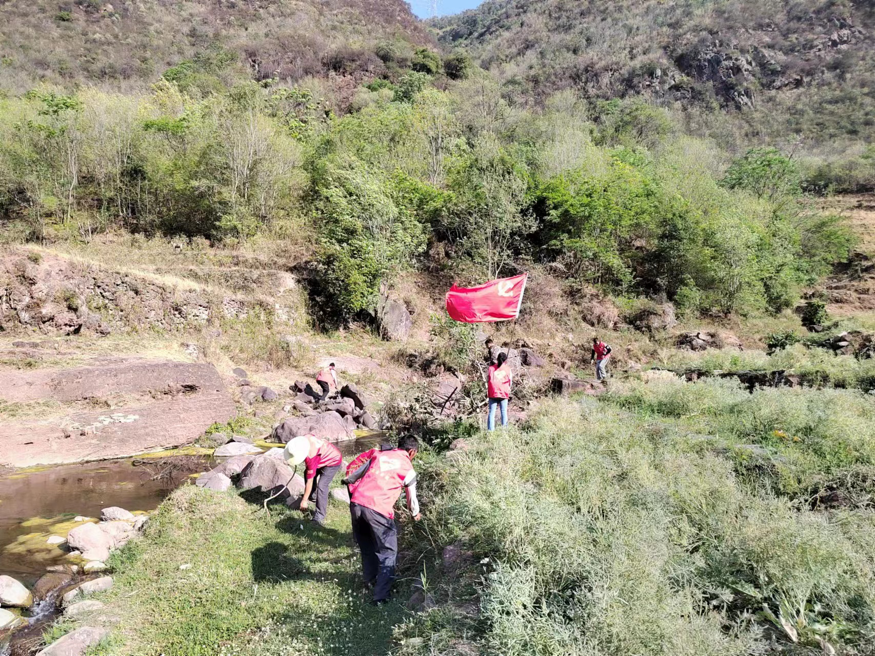 为维护辖区内河道干净整洁,营造良好生态环境,4月12日下午,营盘村委会组织党员群众开展糯谷河河道清理整治行动,此次行动主要针对巡河过程中发现的白色垃圾以及居民产生的生活垃圾进行清理。