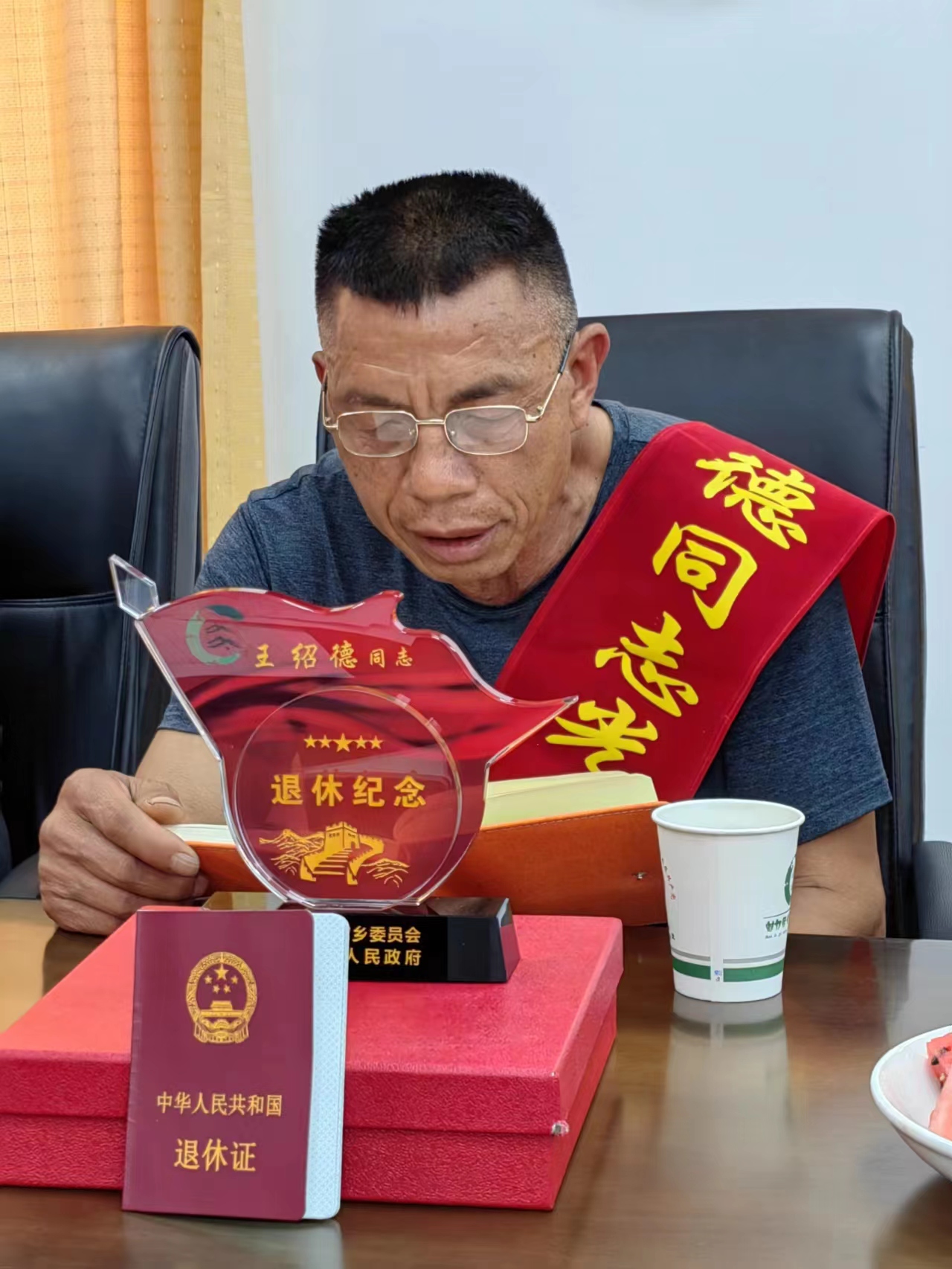 仪式上,发窝乡领导班子成员为王绍德、杨世学两位同志颁发了退休证书和“光荣退休”的纪念品,送上了乡党委、政府的关怀,致敬了两位同志在工作岗位上奋斗了数十年的使命担当。