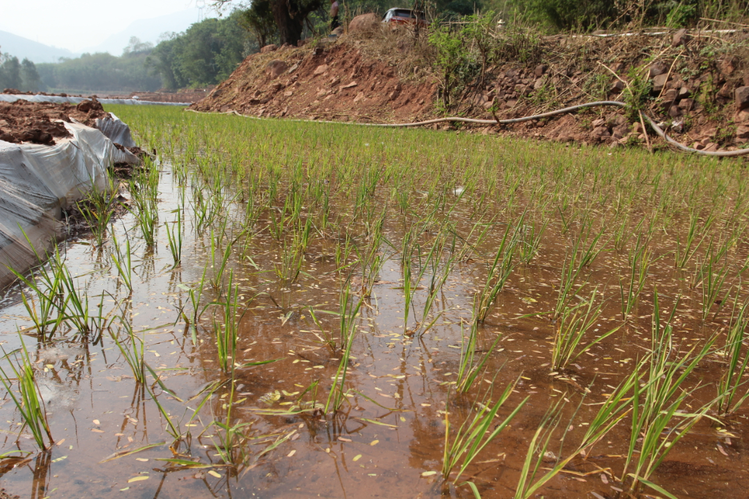 同样,在去年已经完成“旱改水”的达卧村委会以都都村和罗务卡村项目地,种植大户承包商李世明培育的30亩旱秧苗和15亩水秧苗已经长出了绿芽,待秧苗再长高一点就可以进行大规模移栽。