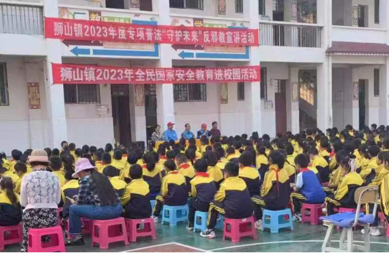 “平安狮山”志愿队到辖区内 所中小学校开展狮山镇开展专项普法“守护未来”反邪教宣讲活动,向师生们讲解了什么是邪教、邪教的基本特征、邪教的严重危害性、邪教与宗教的区别、如何防范和抵制邪教问题等知识,并列举发生在身边的实例,引导师生自觉远离邪教,不听、不信、不传,提高识别和抵制邪教的能力。