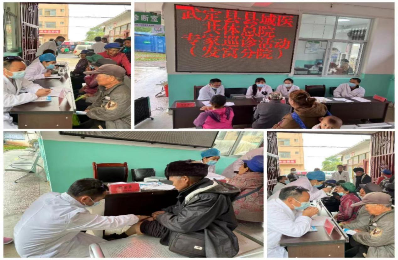 5月16日,武定县县域医共体专家在卫生院门口为前来看病的患者免费诊疗;巡诊现场,专家们对前来就诊的患者进行认真细致的检查,耐心询问病史,为患者提供了相关的检查、治疗、用药等指导意见。