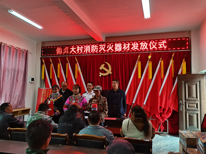 仪式上,县消防大队大队长唐旭表示,希望通过此次器材配发能够提升他贞大村居民的消防安全意识,并提出三点要求:一要发挥组织优势,强化消防安全意识。定期开展消防安全知识宣传教育及应急演练,不断提升群众消防安全意识。二要强化老旧民房线路改造,保障用电安全。村委会要协调力量为弱势群体线路改造给予帮助和支持,并引导广大群众要提高安全用电意识,主动开展民房线路改造。三要管好用好消防器材,确保关键时刻发挥作用。加强消防安全知识培训,让广大群众学会正确使用灭火器等消防器材,让“小器材”在关键时刻发挥“大效用”。