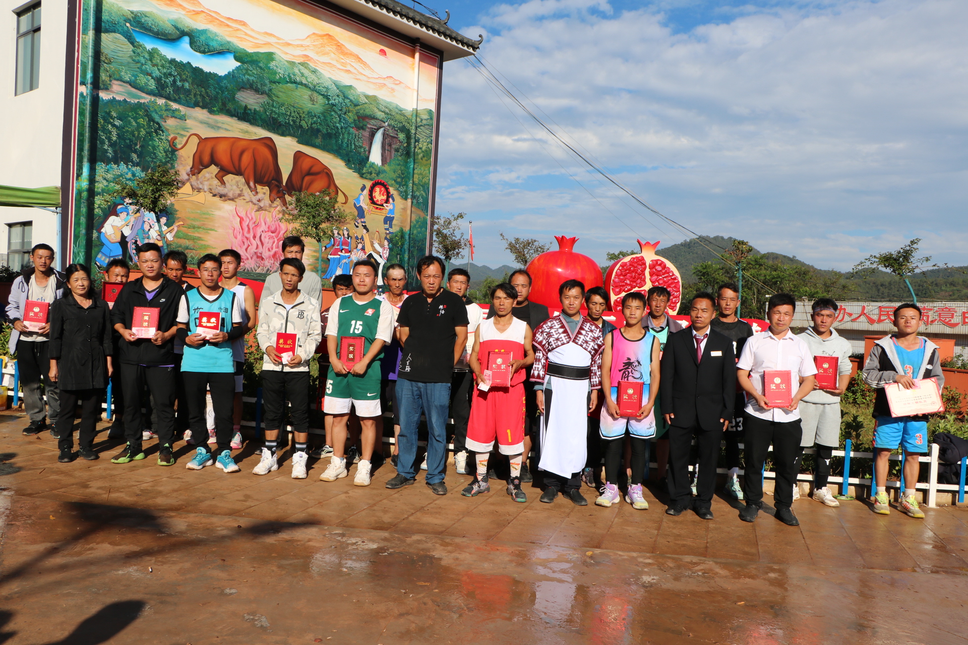 比赛最终决出了一二三名,并评出优秀组织奖3名、精神文明奖3名,每个队评出1名精神文明队员,并分别发放锦旗、证书和奖金;小石桥村还为每一支参赛队准备了一只本地壮鸡。