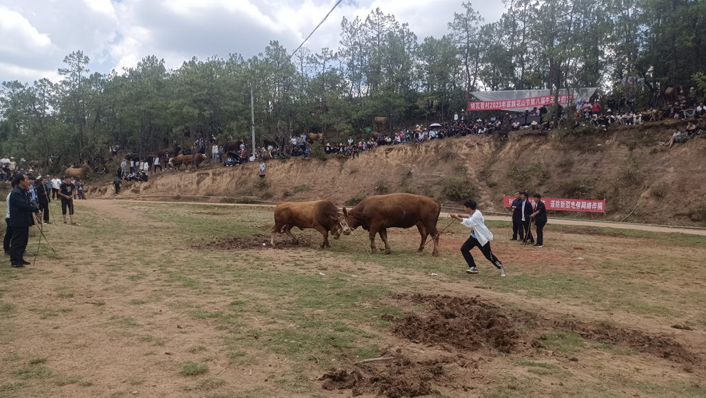 为活跃群众的文化生活,进一步弘扬民族文化,增进广大民众对斗牛文化的深入了解,振奋中华民族精神。2023年花山节期间,发窝乡它亨村委会烧瓦箐村精彩上演第八届苗族花山节传统斗牛比赛。来自十里八乡的群众2000余人身着民族盛装欢聚一堂,共庆花山节。