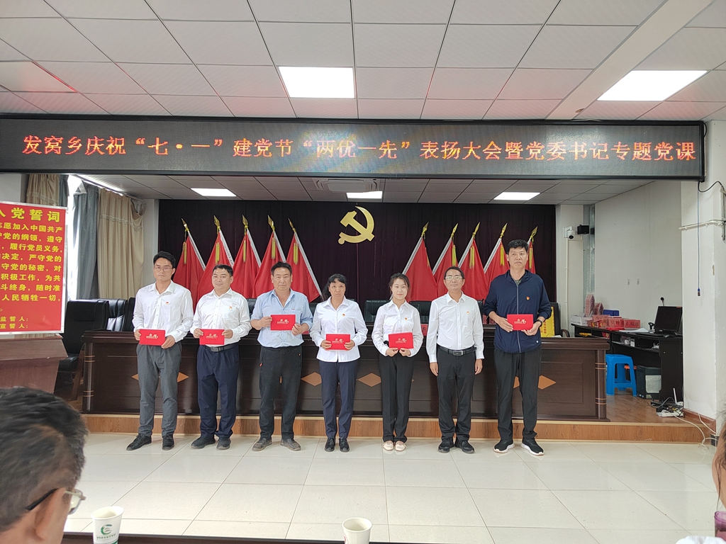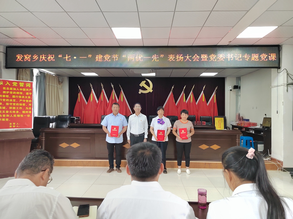 在庆祝中国共产党成立102周年之际,为表扬先进、砥砺奋进,发扬发窝乡各级党组织的战斗堡垒作用和广大党员先锋模范作用,6月29日,发窝乡召开“两优一先”表扬大会暨党委书记讲专题党课,表扬了一批优秀共产党员、优秀党务工作者和先进基层党组织,引导全乡各级党组织和全体党员向先进学习、向典范看齐,进一步激励广大党员干部弘扬伟大建党精神,牢记“三个务必”,继续埋头苦干、锐意进取。乡党委班子成员、各村党总支书记、全体干部职工、部分受表扬代表参加会议。