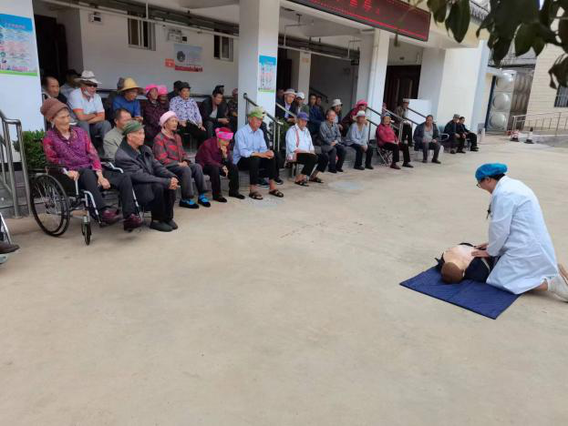猫街镇卫生院临床科主任董星池向老人们开展了呼吸系统疾病防治、心脑血管疾病防治和胸痛救治等健康知识培训。