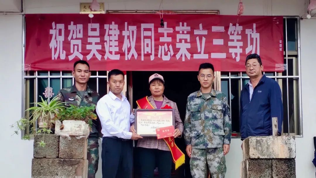 为进一步增强军人及家属的荣誉感和自豪感,积极营造“一人参军、全家光荣,一人立功、家乡光荣”的浓厚氛围,7月9日,发窝乡为它亨村委会烧瓦箐大村、发窝村委会中梁子村荣获三等功、“四有”优秀士兵家属送上立功喜报及慰问金,为立功家属佩戴荣誉绶带,用满满的仪式感让军属感受到党和政府的关心关怀。乡党委副书记、乡长潘在华,乡党委委员、政法委员、副乡长、武装部长莫开国,乡退役军人事务服务站、相关村委会负责人参加活动。