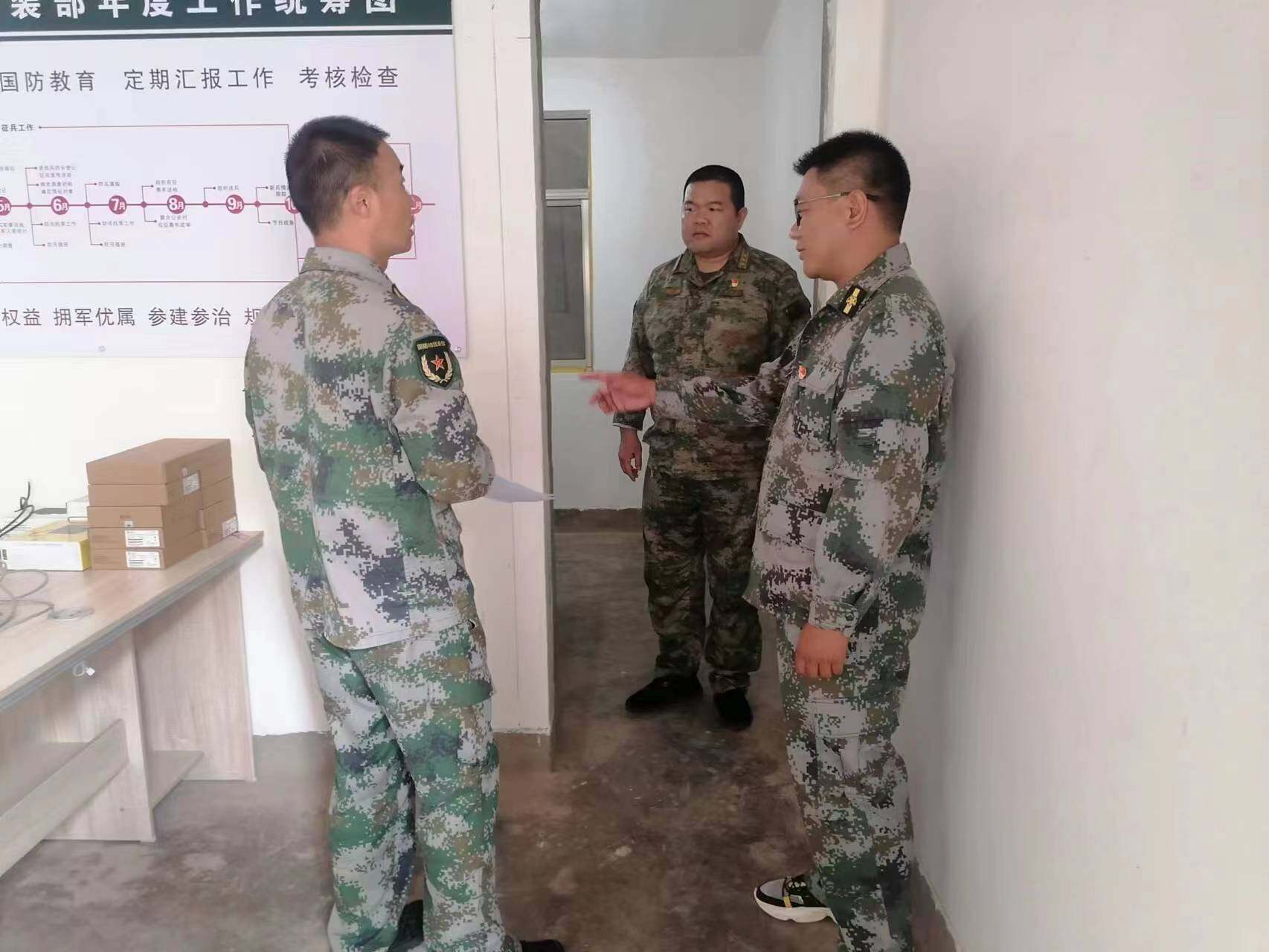 为进一步强化我乡基层武装部规范化建设,增强党管武装意识,确保基层党管武装工作落到实处。7月5日,县人武部政委梅晓东、县基层武装部规范化建设负责人王建荣到环州乡武装部检查基层武装建设工作。乡人民政府副乡长、武装部部长李海欧陪同检查。