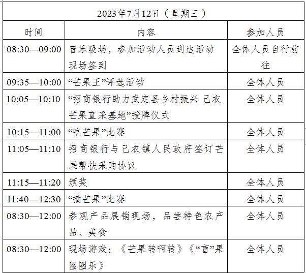 2023年武定县己衣镇芒果文化旅游节活动日程安排表