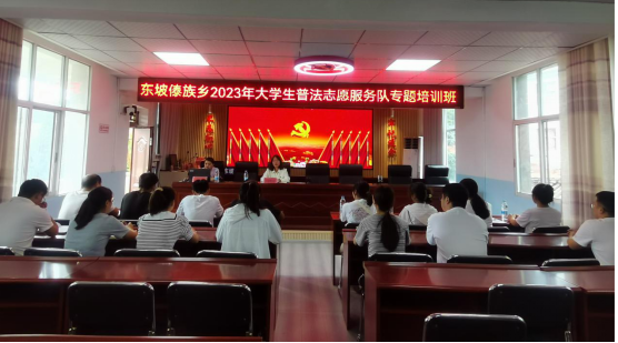 2023年7月13日,东坡乡2023年大学生普法志愿服务队专题培训班在乡政府四楼会议室召开,培训由乡团委书记周继瑶主持,东坡司法所所长高维右作专题培训。
