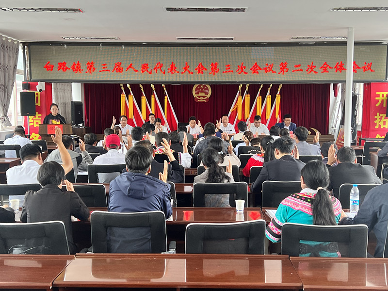 伴随着庄严的《国歌》,在与会人员的共同努力下,白路镇第三届代表大会第三次会议圆满完成各项议程,胜利闭幕。