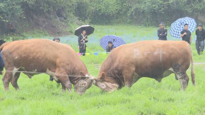 伴随着蒙蒙细雨,“村BA”、斗牛、斗鸡、射弩、打陀螺、拔河等预热活动有序开展。虽然天公不作美,但是丝毫没有影响到参赛者和观众的热情。射弩场上,只见选手们拉弦、装箭、瞄准、发射,一气呵成。
