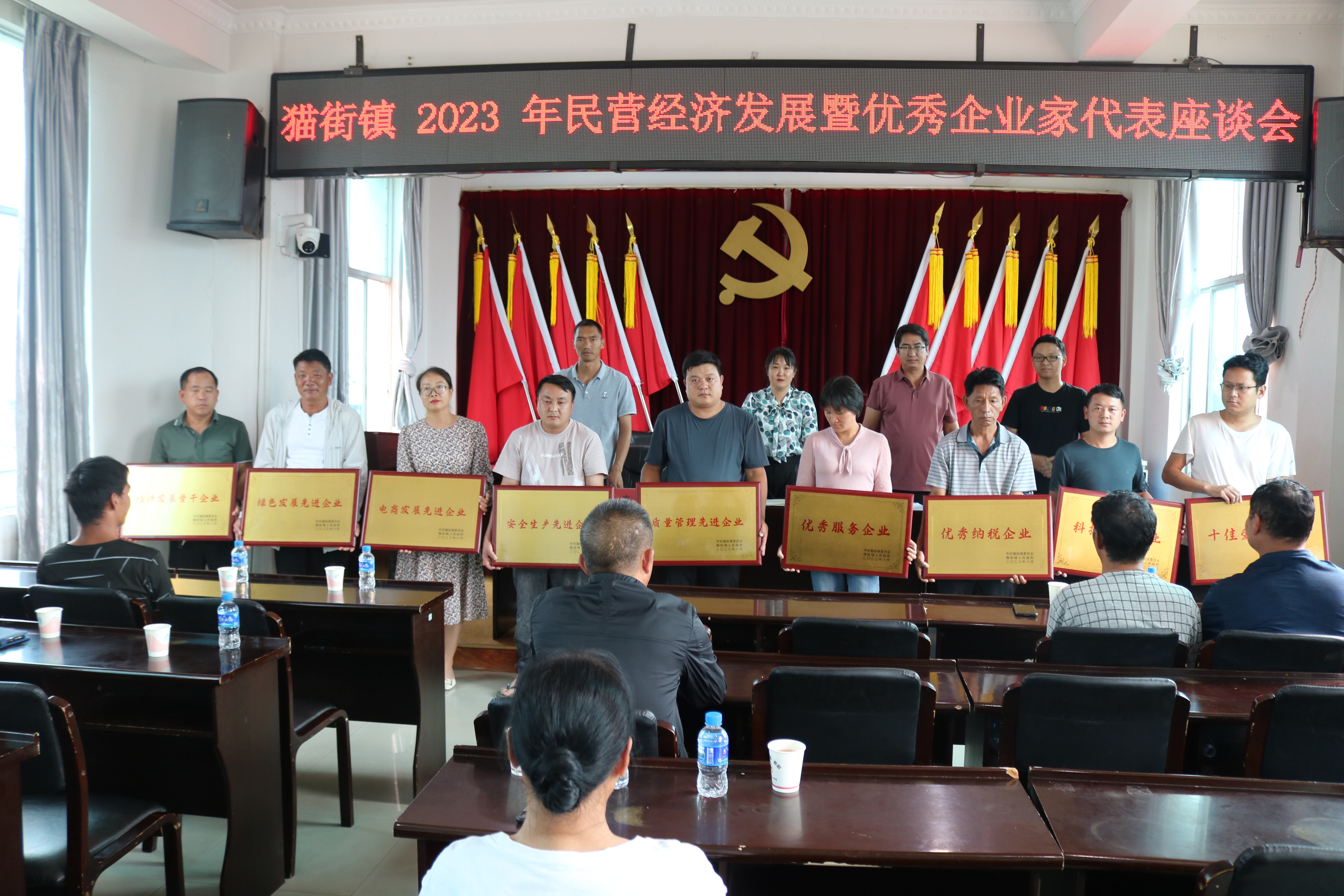 会上镇人民政府镇长杨海通报猫街镇经济发展状况;镇党委副书记董纬通报表扬优秀民营企业及企业家,发放奖牌,对有突出贡献的民营企业家给予肯定,鼓励民营企业放心大胆地去发展。