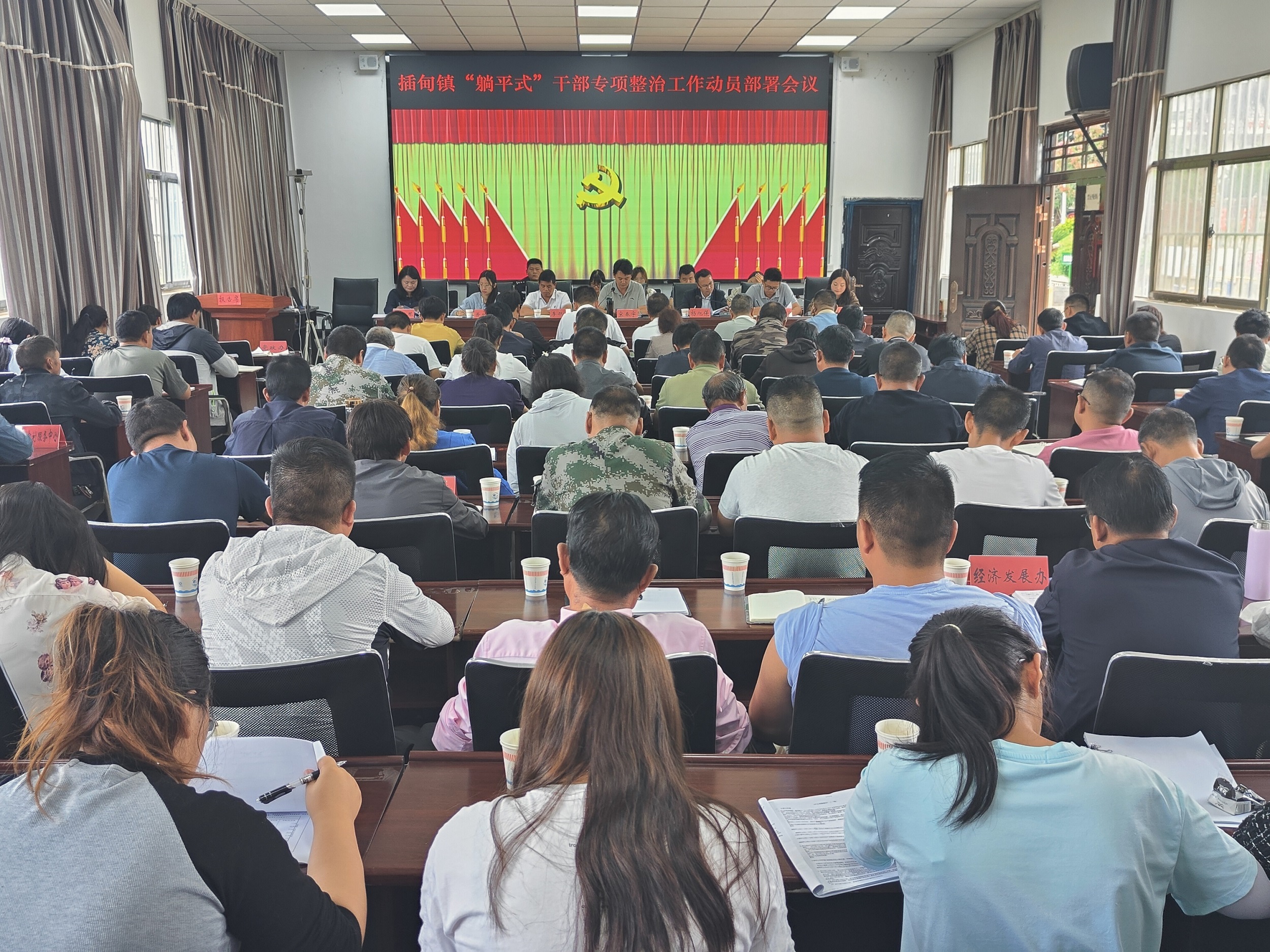 会议指出,开展“躺平式”干部专项整治,是贯彻落实中央和省州县党委要求的重大举措,是抢抓发展机遇、实现插甸高质量跨越式发展的根本保障,是转变干部作风、密切党群干群关系的迫切需要,是增强干事创业本领、提升执行力推动力发展力的现实选择。全镇上下务必高度重视,提高认识,迅速行动,把思想认识统一到中央和省委、州委、县委和镇党委的要求上来,把开展“躺平式”干部专项整治工作作为一项长期的重要政治任务,切实抓紧抓好抓出成效。