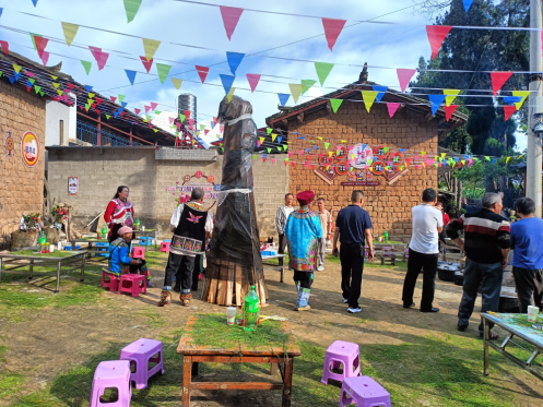 团碑能木窝村,是一个四周环山的传统彝族古村落,8月9日,这里隆重举办了2023年彝族火把节。经过数十载的沉淀,火把节呈现出村寨活动丰富、民族特色突出,还原民俗味道,让我们体验到了激情四射的民族狂欢盛宴。