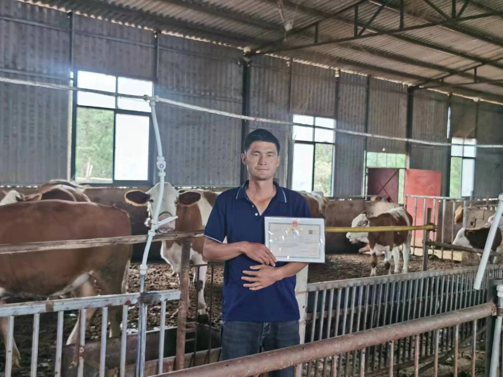 这两年,猫街镇紧紧围绕武定县“牛七条”政策,扎实推进肉牛产业发展,走出了一条农民增收、产业增效的发展之路。走进猫街镇秧草地村委会秧草地村徐建军养牛场里,一头头膘肥体壮的西门塔尔牛正在吃饲草,徐建军正在清理牛舍、添置饲草。2014年徐建军贷款购买8头优质品种西门塔尔牛养殖,到现在已经养了近十年的牛,养殖规模扩展到了60多头。为了更加科学养牛,他经常到各地养牛场学习,在手机上查阅养殖资料,长期的学习让他积累了丰富的养殖经验。这两年,他跟上了猫街镇大力推进肉牛养殖发展的步伐,走上了良种牛的规模化养殖道路,成了村里有名的养殖大户,在2022年猫街镇肉牛产业发展推进会上被评为“肉牛产业发展示范户”。徐建军表示,下一步将继续扩大养殖规模,紧靠猫街镇肉牛养殖发展扶持政策,巧念养牛“致富经”,做好养牛“带头人”,走出养牛“致富路”。