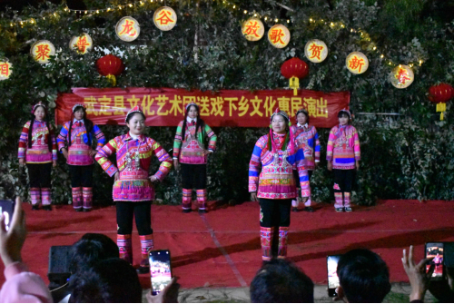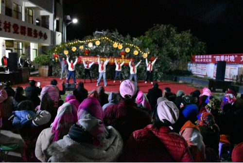 下午,县文化馆到活动现场进行写春联送祝福活动。傍晚时分,篝火晚会在《中华全家福》节目中拉开帷幕,《报答祖国》《傈僳花衣裳》《感恩共产党》《相亲相爱》等丰富多彩的节目轮番上演,让观众大饱眼福,掌声、欢呼声一浪接一浪。演出过程中加入乡村振兴知识问答、击鼓抢座、彝族酒歌接唱等趣味游戏,增加了晚会的趣味性和互动性,紧扣时代主题、紧贴幸福生活,让基层群众在家门口就能亲身感受一场吉祥喜气、年味满满的文化盛宴。