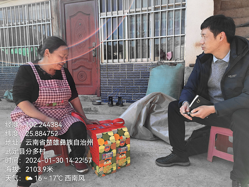 春节临近,年味渐浓。1月30日,楚雄州工商联副主席李聪荣率队到发窝乡分多村开展春节慰问送温暖活动,走访慰问困难党员、挂包联系户,为他们送上党和政府的深情关怀及节日的祝福。