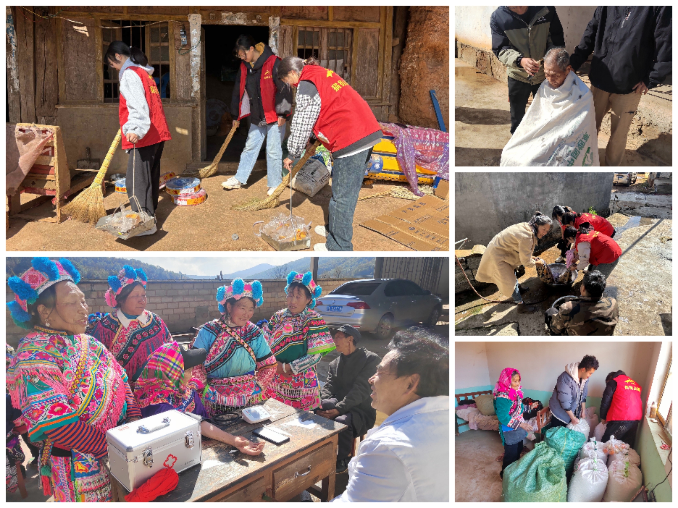 期间,村委会三职、驻村工作队、返乡大学生、村医合力为老年人和行动不便群众开办安心食堂、理发、健康体检、提供用药咨询、清洗衣物被褥、打扫卫生、搬粮食、更换床单被褥等。