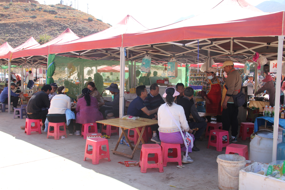 春节期间东坡乡每日游客数量约1.5万人次,整个春节假日经济突破150万元,同比增长50%。大年三十前一天正好是东坡乡的固定赶集日,这天无论是最后一批返乡人员还是提前回到家一大早就开着车子来备年货的人们都聚集到集市。当天工作人员一大早就到集市各路口做好交通疏导工作,疏导车辆800多辆,集市上生鲜瓜果肉蛋几乎全部售空,各类小吃摊、餐馆饭店客流如织,仅赶集日当天各类销售额约达75万元,同比去年同期增长25%。