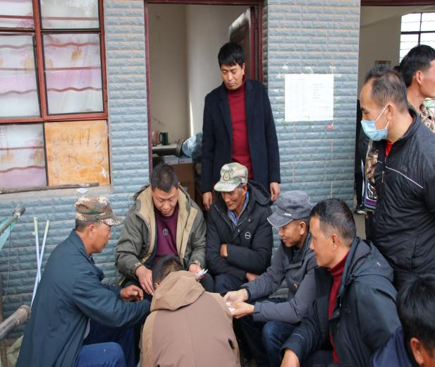 村民活动室旁的篮球场上人头攒动,热闹非凡,拔河的加油声一浪高过一浪,紧接着的篮球赛又掀起一阵阵高潮,场下的观众仿佛比球员更为投入,为一次次的进球和抢断拍手叫好,也为一次次的失误扼腕叹息。经历了激动人心的时刻后,大家在欢声笑语中来到了活动室内参加双扣、象棋比赛,开始了“智斗”,一盘盘“杀下来”决出了胜负,也赛出了友谊。