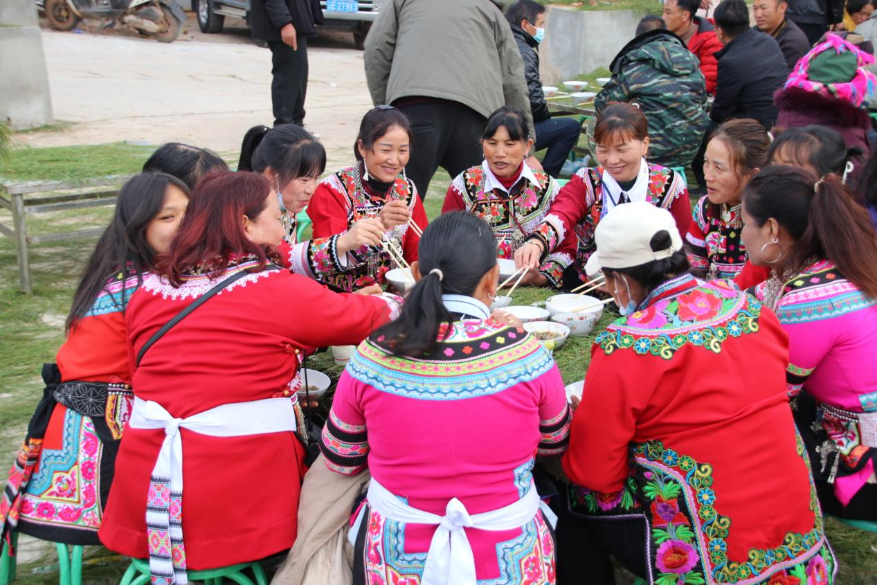 与此同时,球场上忙碌着的是一群乐于奉献的“小蜜蜂”,他们正在为大家准备下午的大餐,杀鸡、宰羊、搭灶、生火、洗洗切切,干得热火朝天。在为球场铺上绿油油的松毛后,彝家人的宴会就开始了,热腾腾的饭菜上了桌,大家把酒言欢,席间酒歌此起彼伏,好不热闹。