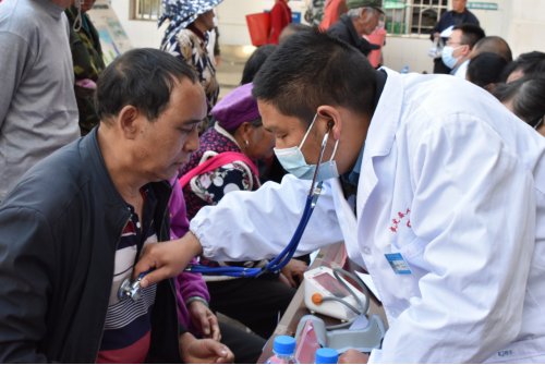 活动现场,医疗团队专家们耐心地为每一位前来就诊的村民进行诊疗服务,免费体检、测血糖、量血压,仔细查看检查报告,询问他们的身体状况,对所患疾病进行详细解答,对村民的生活方式和健康状况进行评估,使其能及时准确地了解到自身的健康状况,并耐心给予正确指导,让村民们切实感受到专家团队义诊带来的好处。