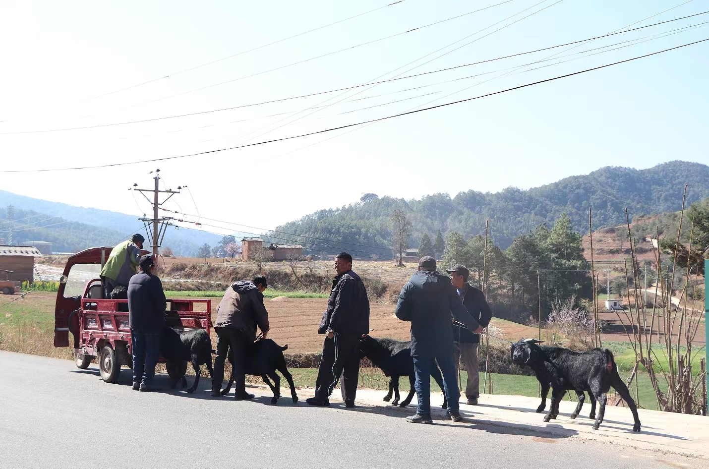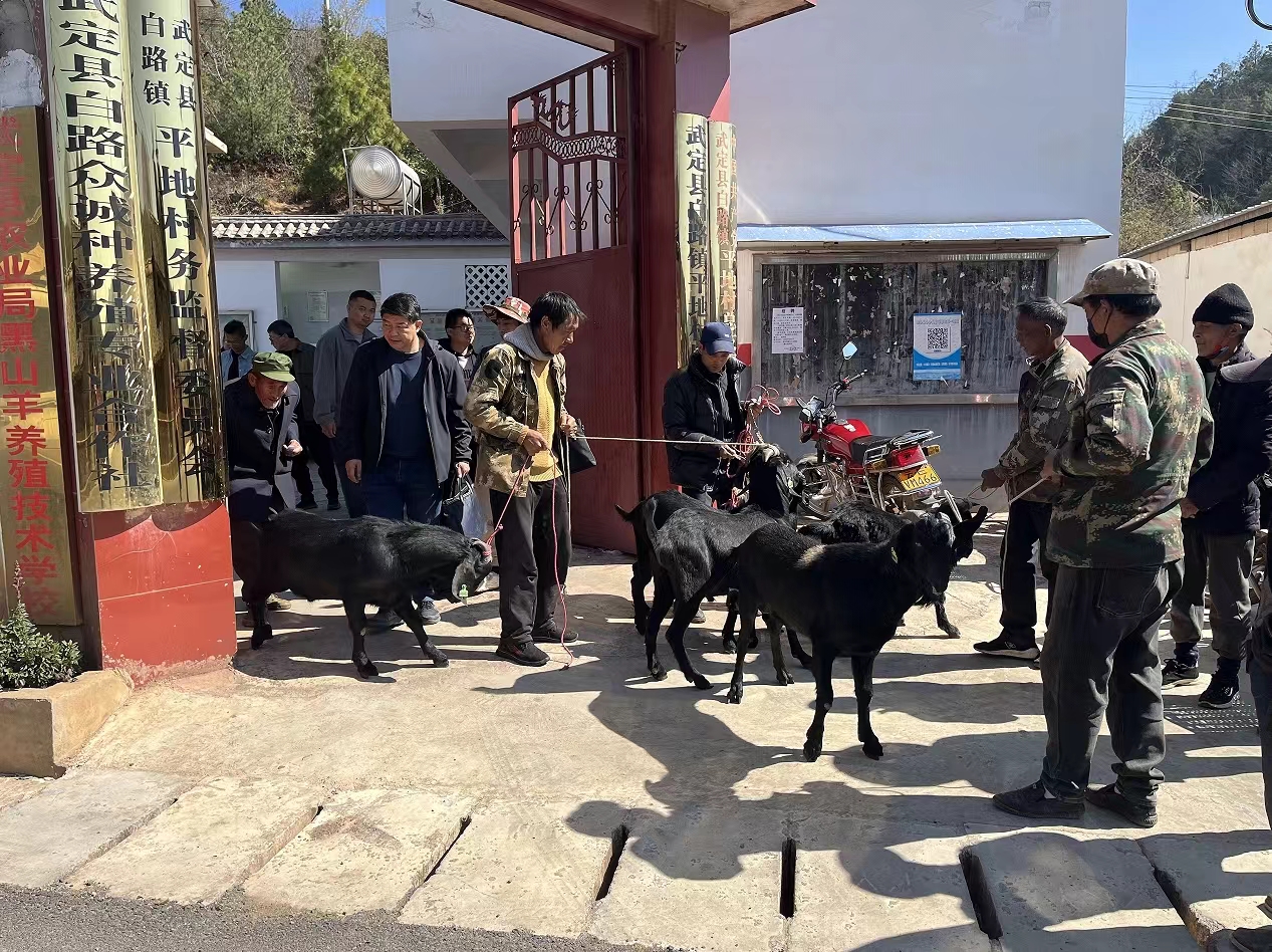 3月7日上午,在楚雄州农业农村局大力支持下,由州畜牧科技推广站牵头,借助武定县白路镇实施肉羊杂交改良提质增效示范推广项目,15只优质云上黑山羊种公羊经州动物疫病预防控制中心通过疫病检验检测后运抵白路镇免费发放给白路、平地、营盘、洒布柞四个村委会15户山羊养殖户。为白路镇肉羊品种改良、精细化管理、肉羊产业高质量发展打下坚实基础。州畜牧科技推广站、县动物疫病预防控制中心领导及相关技术人员、经推荐筛选的15户肉羊养殖户在平地村委会共同参加了种公羊发放座谈、养殖技术交流、分发抽签、签订领养承诺书等系列活动。