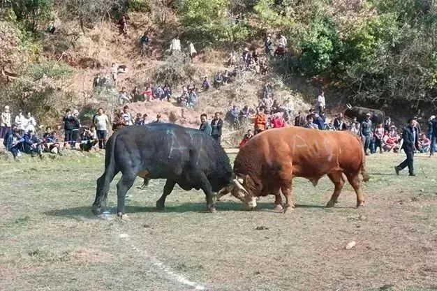 除了赏花、品特产、看表演,此次桃花节更是有精彩纷呈的斗牛、斗羊、斗鸡比赛、负重登山比赛同时上演。“牛博士”“羊秀才”“鸡专家”们互不相让,纷纷使出自己的看家本领,头顶、角扎、直冲、侧撞……斗得难分难解,斗到激烈时,观众们纷纷鼓掌高呼,现场气氛惊险刺激。
